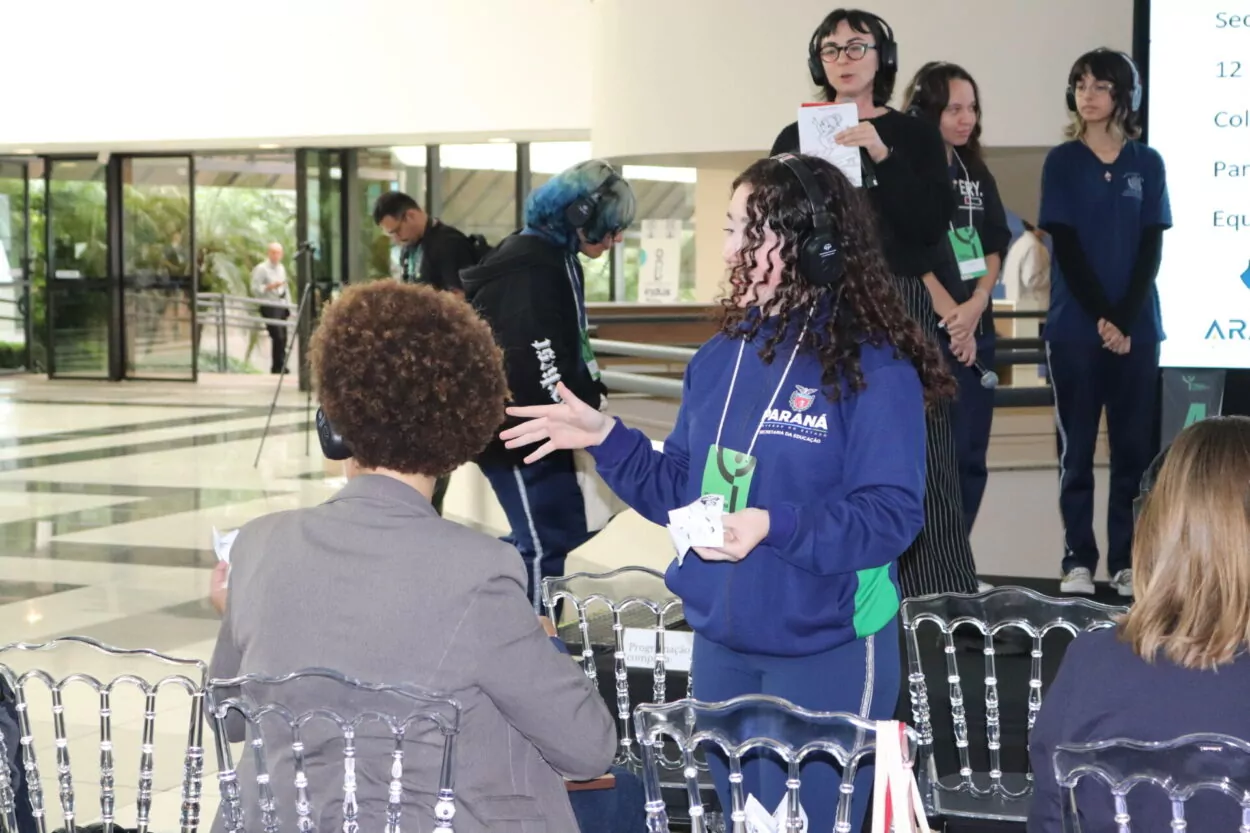 Para muitos estudantes, a participação na Semana Araucária foi a primeira experiência em um evento científico. É o caso dos integrantes do clube Cross Tech Science Portinari, da Escola Municipal CAIC Cândido Portinari, em Curitiba. O professor Roni Zanatta explica que a presença no evento representa uma oportunidade de mostrar o trabalho desenvolvido pelos estudantes e também de inseri-los no ambiente da ciência. “O nosso clube se chama Cross Tech Science Portinari, é um nome novo. Atualmente, a gente tem dez integrantes, que começaram agora há pouco tempo, porque houve uma troca de participantes.”