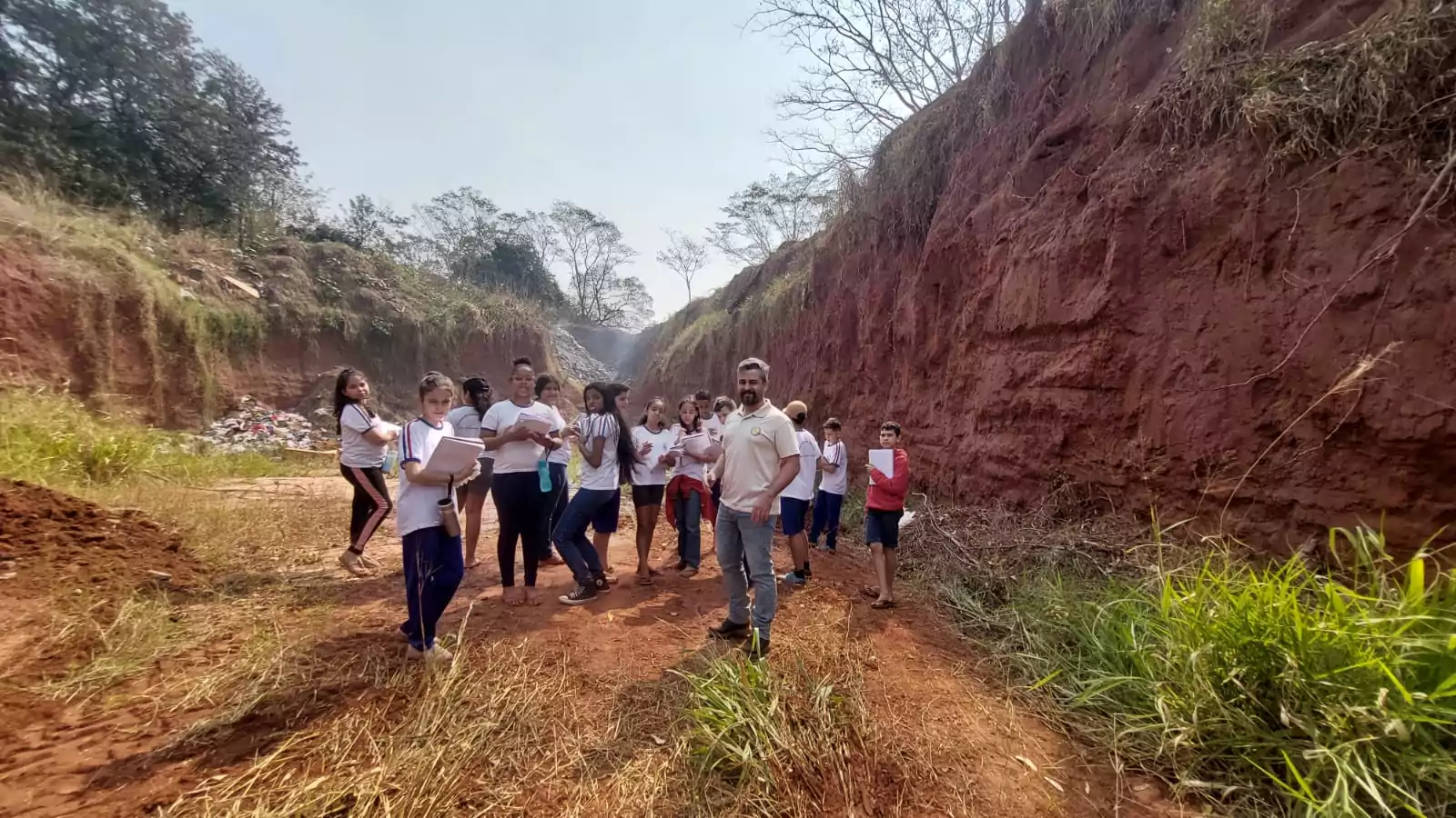 Durante o estudo, os alunos analisaram os efeitos da disposição irregular de resíduos e discutiram temas como consumo acelerado, biodegradabilidade e obsolescência programada, com foco especial nos eletrônicos. Para aprofundar a investigação, realizaram uma visita a um ponto de descarte na comunidade, onde documentaram a situação por meio de fotografias e entrevistas com moradores.