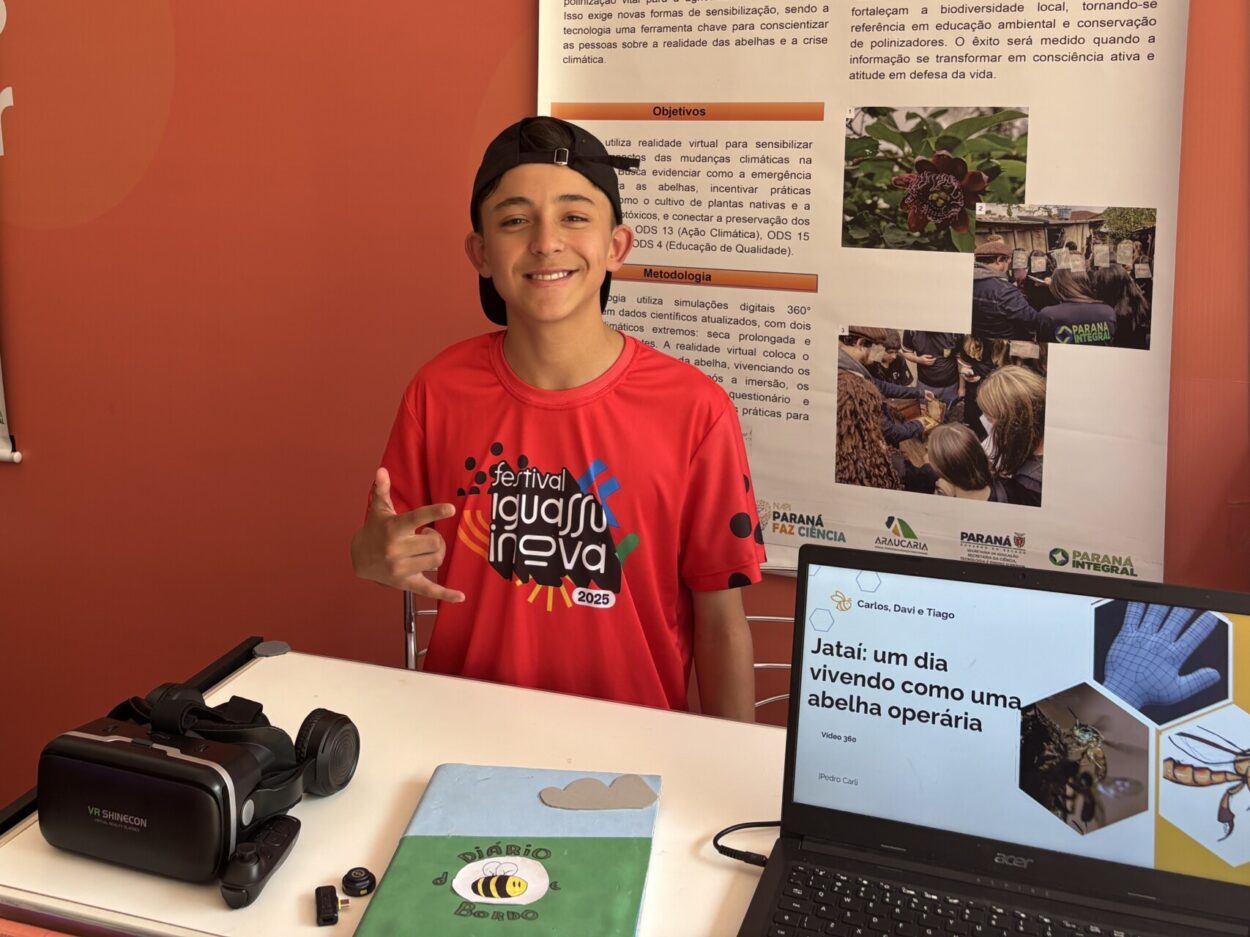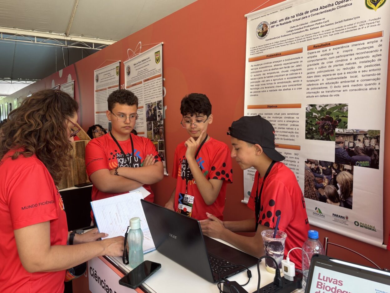 Já o clube Climatize-se, do Colégio de Educação Integral Professor Pedro Carli, de Guarapuava, levou 10 projetos à feira. Acompanhados pela professora responsável pelo clube, Katiane dos Santos, os alunos desenvolveram trabalhos voltados à preservação e ao cuidado com as abelhas. Entre os destaques esteve o projeto “Modelo Didático do Desenvolvimento da Abelha Mirim: da fase ao óvulo”, elaborado pela clubista Giovanna Santos Benedetti, de 13 anos.