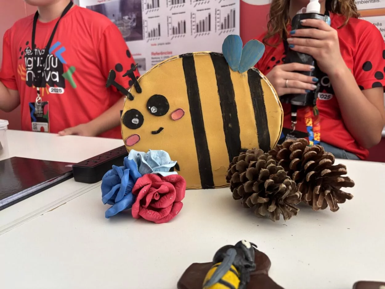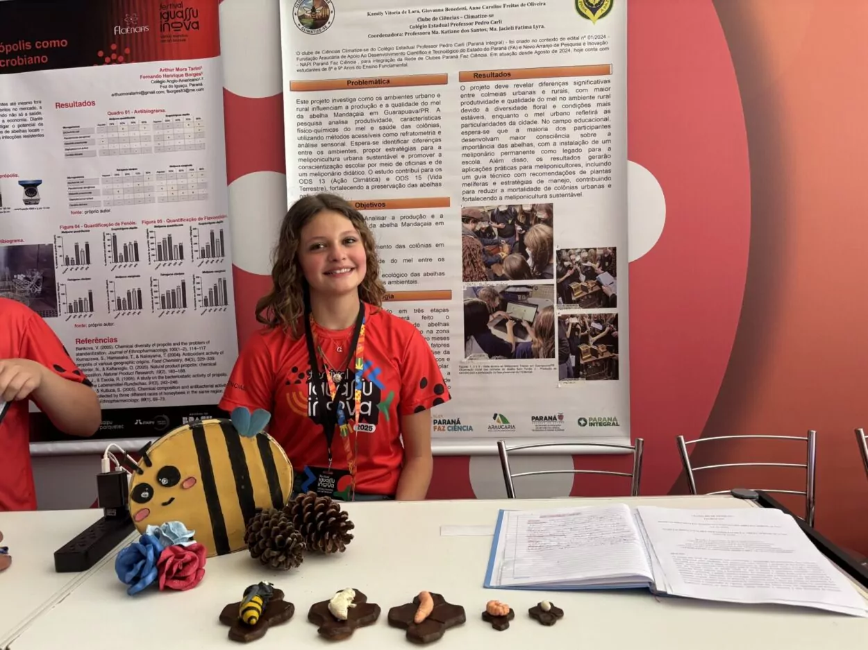 Já o clube Climatize-se, do Colégio de Educação Integral Professor Pedro Carli, de Guarapuava, levou 10 projetos à feira. Acompanhados pela professora responsável pelo clube, Katiane dos Santos, os alunos desenvolveram trabalhos voltados à preservação e ao cuidado com as abelhas. Entre os destaques esteve o projeto “Modelo Didático do Desenvolvimento da Abelha Mirim: da fase ao óvulo”, elaborado pela clubista Giovanna Santos Benedetti, de 13 anos.