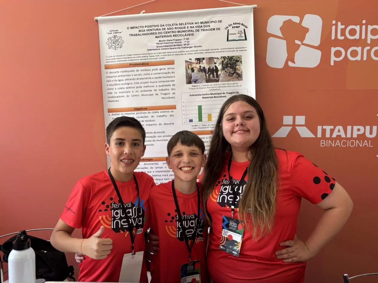 As propostas apresentadas pelos alunos clubistas abordaram temáticas variadas, como coleta seletiva, preservação e manejo de abelhas, sustentabilidade e mudanças climáticas. Entre os destaques está o projeto “Impacto positivo da coleta seletiva no município de Boa Ventura de São Roque e na vida dos trabalhadores do centro municipal de triagem de materiais recicláveis”, desenvolvido pelos alunos Murilo Viana Fogaça, Hycaro Kaminski Rodiak e Bruna Catarina de Deus, integrantes do Clube Adonis com Ciência, do Colégio Estadual Adonis Morski. O trabalho tem como objetivo propor soluções para um problema frequente no município: a perda de materiais recicláveis devido à contaminação por resíduos orgânicos. A pesquisa avalia os impactos positivos da coleta seletiva, tanto para o meio ambiente, quanto para os trabalhadores da triagem. “Nós fomos até o centro de triagem e realizamos entrevistas para entender quanto eles ganham, que tipo de lixo chega lá. Descobrimos que muitas vezes aparecem coisas como cabeça de boi, veneno e outros materiais contaminados. Isso prejudica muito, porque eles precisam descartar o caminhão inteiro de recicláveis, por não ter como saber se o restante do material também está contaminado”, contou a estudante Bruna Catarina de Deus.