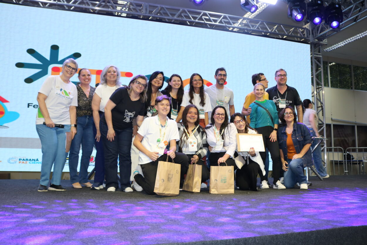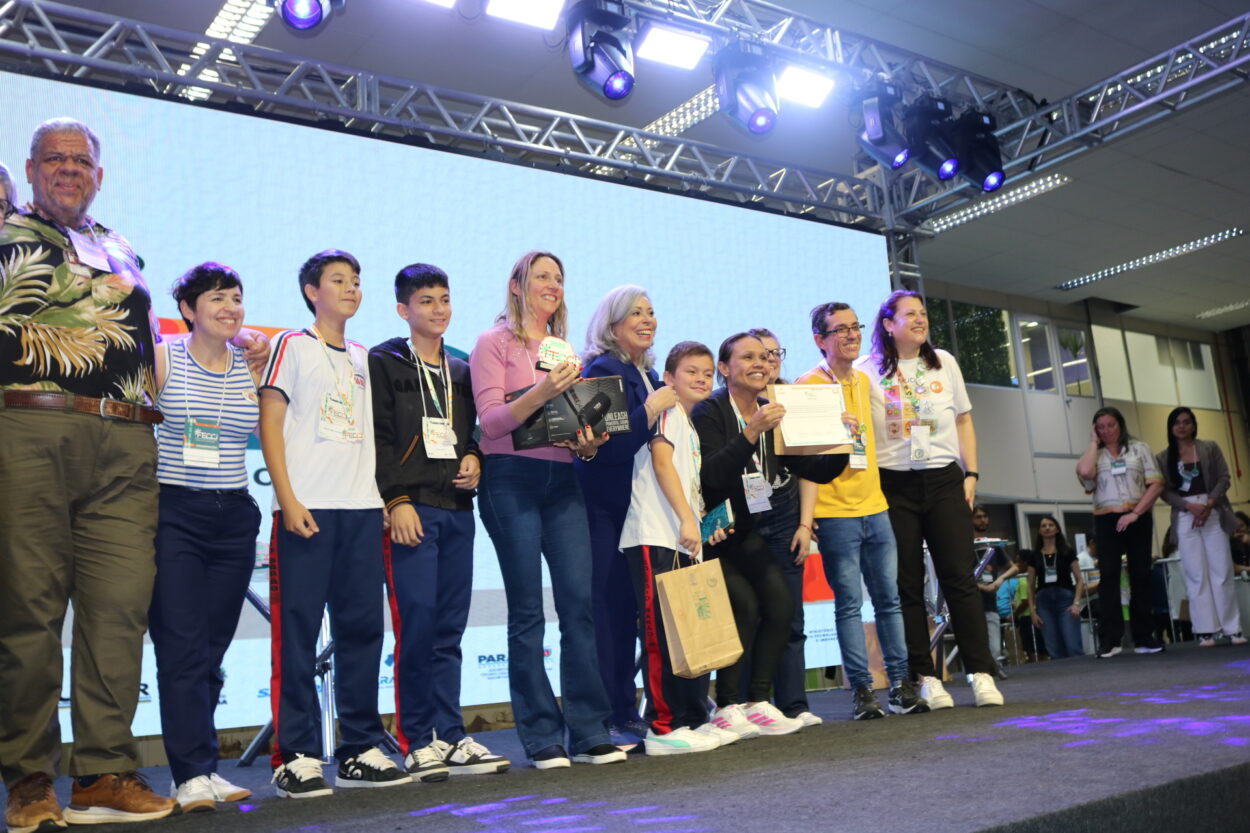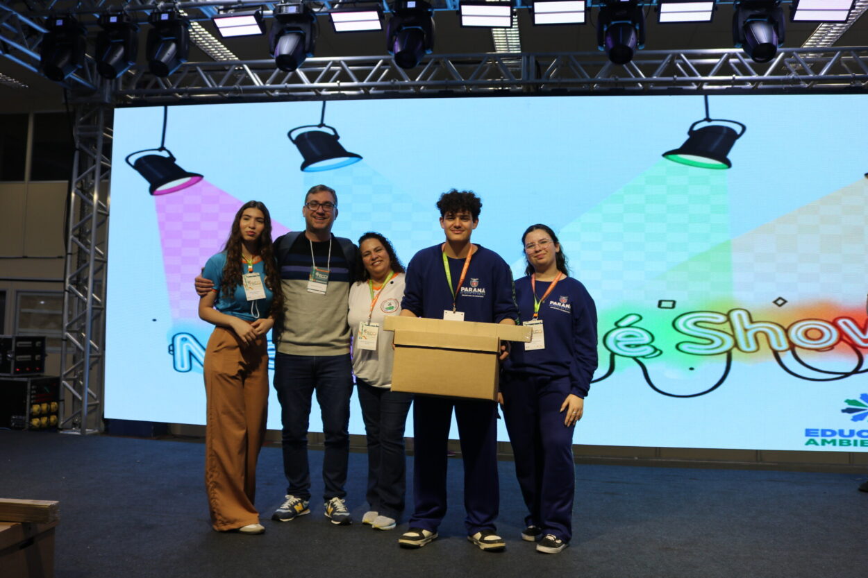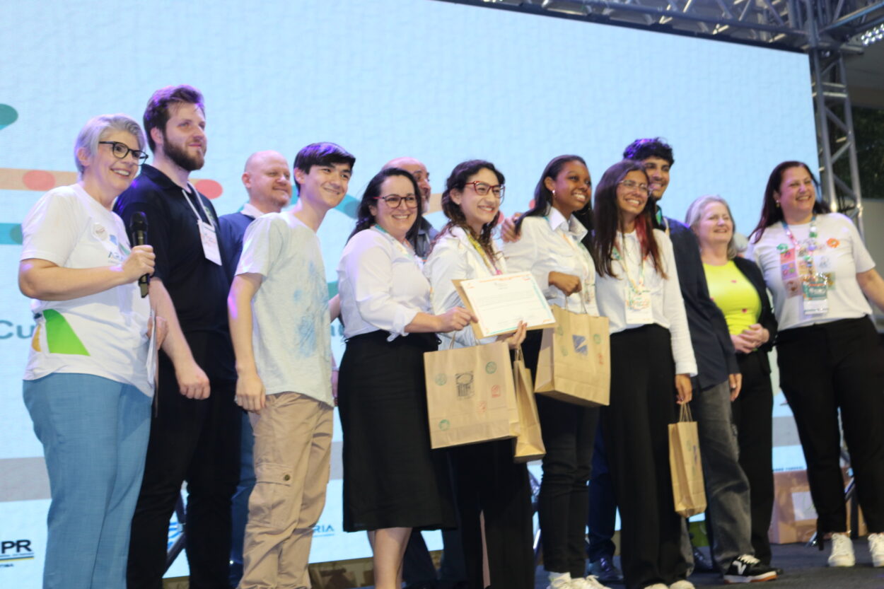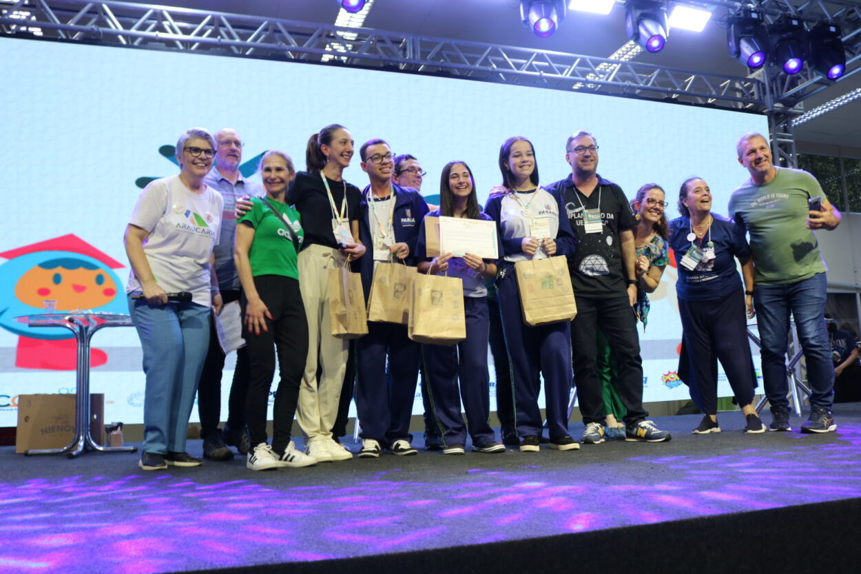 O Clube Mundo Verde, do Colégio Estadual Barão do Rio Branco, em Assaí, e parte do NRE – Cornélio Procópio celebrou o primeiro lugar na categoria mais disputada pela comunidade: a Escolha do Público. Como orientadora, está a professora Aparecida Cândida Duarte.