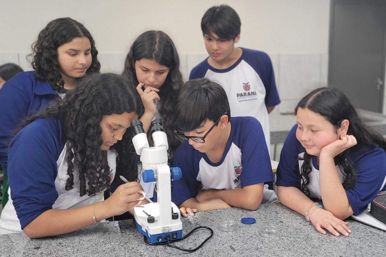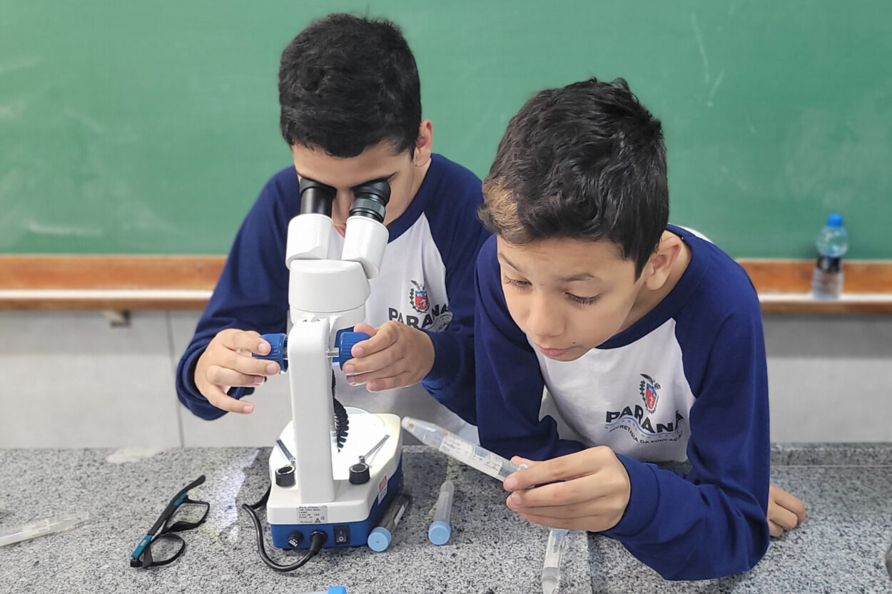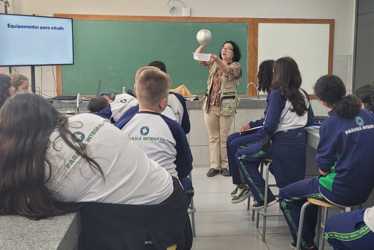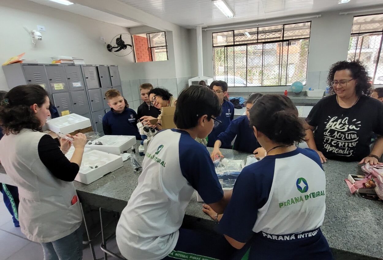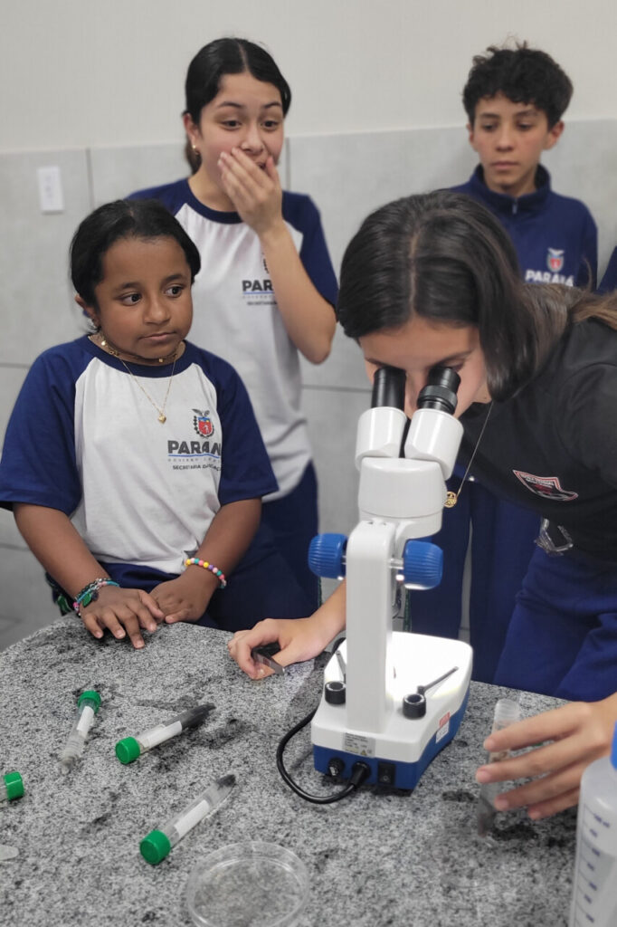 Esse aprendizado se conecta ao percurso já trilhado pelo grupo em sua pesquisa sobre o rio Belém, vizinho da escola e de grande parte dos alunos. Ou seja, ‘olhar de perto’ aqui, significa também voltar-se para o próprio território, perceber os sinais que a água carrega e compreender que a biodiversidade está intimamente ligada à vida e ao dia a dia da comunidade.