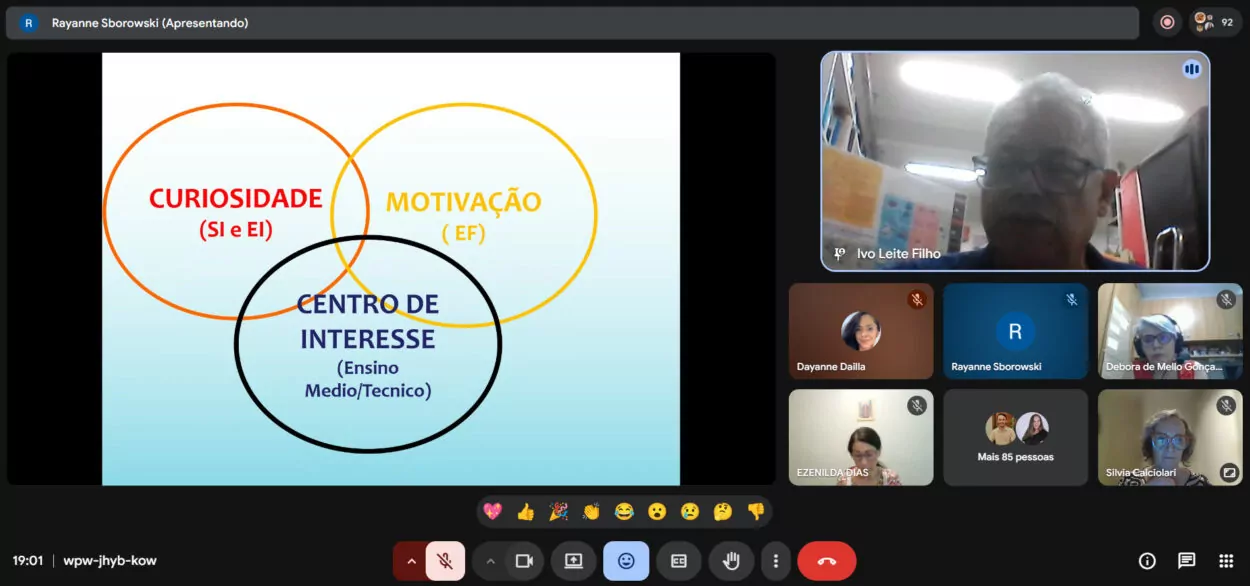 O início do primeiro curso de formação para professores, graduandos e pós-graduandos e gestores de escolas públicas e privadas sobre a realização de feiras de ciências não poderia ter sido mais produtivo e inclusivo. Foram selecionados 100 participantes para o curso on-line, sendo a maioria do Paraná, mas também de outros estados. Quase a totalidade esteve na primeira reunião realizada nesta quinta-feira, 19, para conhecer a Rede de Feiras de Ciências Paraná – Faz Ciência, o edital de ‘Feiras Afiliadas’ e acompanhar com tradução simultânea em Libras.