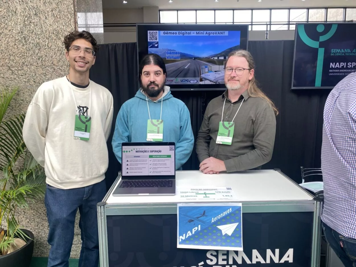 Na primeira tarde do evento, os estandes dos Novos Arranjos de Pesquisa e Inovação (NAPIs) apresentaram resultados de projetos que integram universidades, institutos de pesquisa e setor produtivo em diferentes regiões do estado. Um dos destaques foi o NAPI Aeronaves, que exibiu um protótipo de integração entre um simulador de voo e um sistema físico de controle de aeronave. Segundo o pesquisador da Universidade Tecnológica Federal do Paraná (UTFPR), Marco Wehrmeister, a tecnologia permite reproduzir em bancada os comandos de um avião em tempo real.