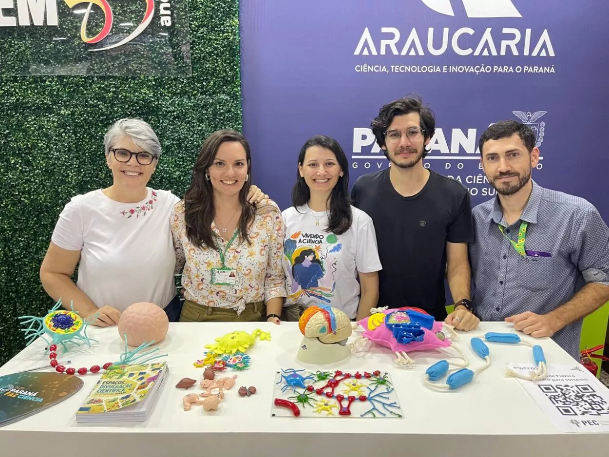 Além de marcar presença no estande dos NAPIs, o NAPI Paraná Faz Ciência integrou a programação do Museu Dinâmico Interdisciplinar da UEM (MUDI). No balcão dos NAPIs, a equipe do Arranjo apresentou a neurociência com a ajuda de modelos de neurônios, células da glia e partes do cérebro, para mostrar aos visitantes como a ciência impacta o dia a dia.
