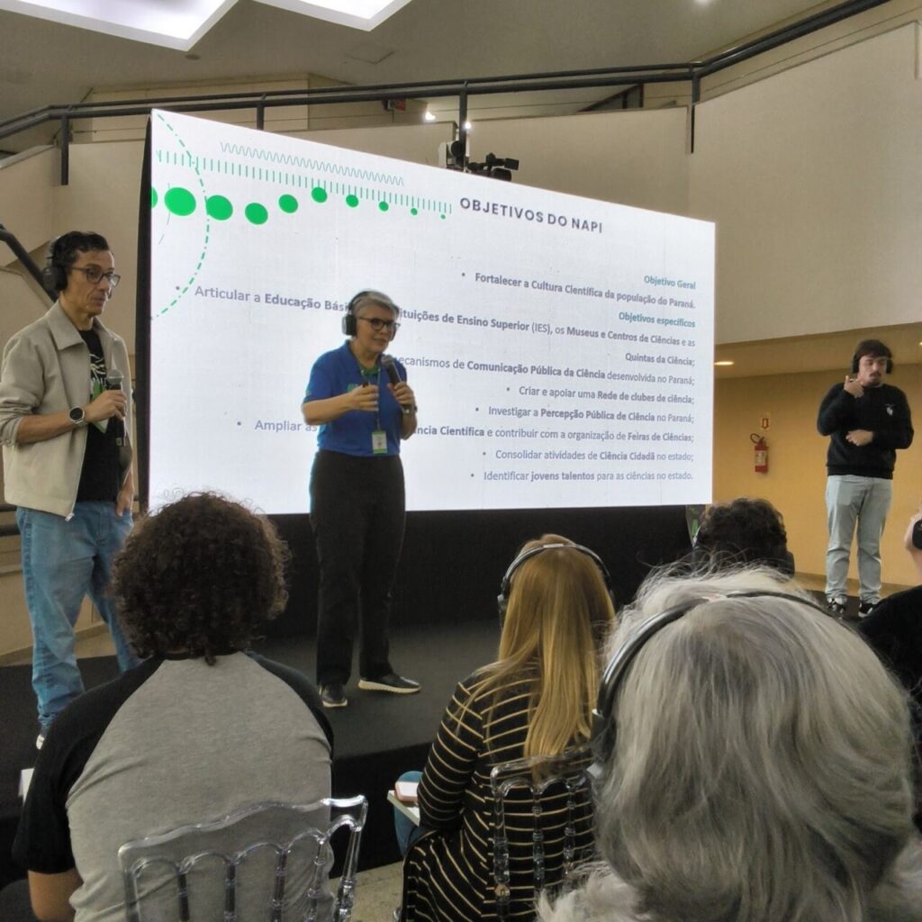 “No capítulo do NAPI Paraná Faz Ciência são apresentados os dados das principais ações desenvolvidas como a Rede de Clubes Paraná Faz Ciência, as ações de comunicação pública, ciência cidadã e as demais redes como a de museus e de feiras de ciências”, explica a professora