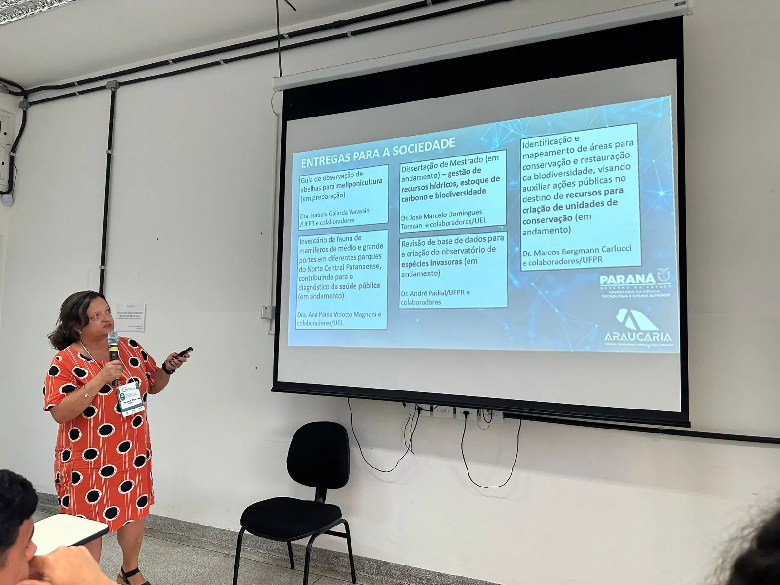Nesse sentido, a professora mostrou de que maneira a degradação ambiental tem comprometido a biodiversidade e os serviços ecossistêmicos e como será a atuação do NAPI. Algumas das entregas já realizadas para a sociedade são: curso de formação de professores em ciência cidadã; guia de campo sobre saúde pública; palestras; e artigos científicos.